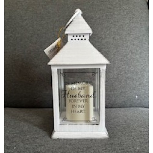 Small sympathy lantern in memory of a husband. 8" tall x 3" wide